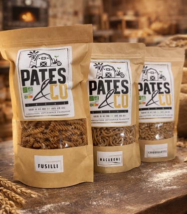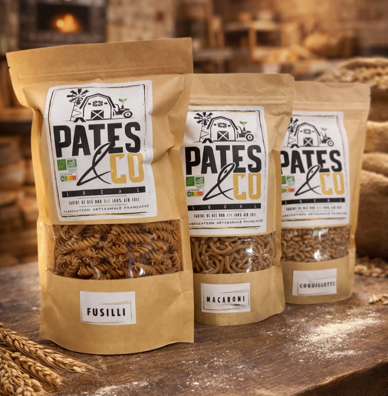 Élaborées à partir de blé dur bio local, nos pâtes artisanales reflètent notre engagement pour une production responsable, ancrée dans notre territoire. Fidèles à notre savoir-faire, nous proposons des produits de qualité.